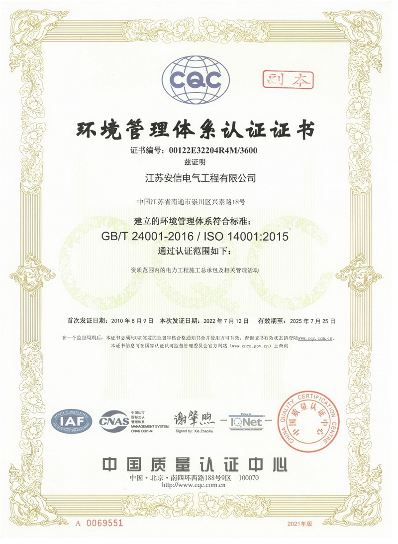 在創(chuàng)業(yè)之初,公司就堅持高起點的戰(zhàn)略思路,廣納賢才,集聚行業(yè)精英,創(chuàng)新發(fā)展,做優(yōu)企業(yè)品牌。現已取得:承裝二級、承修二級、承試二級,電力工程施工總承包二級,輸變電工程專業(yè)承包二級,建筑工程施工總承包二級,建筑機電安裝專業(yè)承包二級,地基基礎專業(yè)承包二級資質證書,并通過了質量、環(huán)境、職業(yè)健康和安全管理體系認證,確保各項工作有序管控。